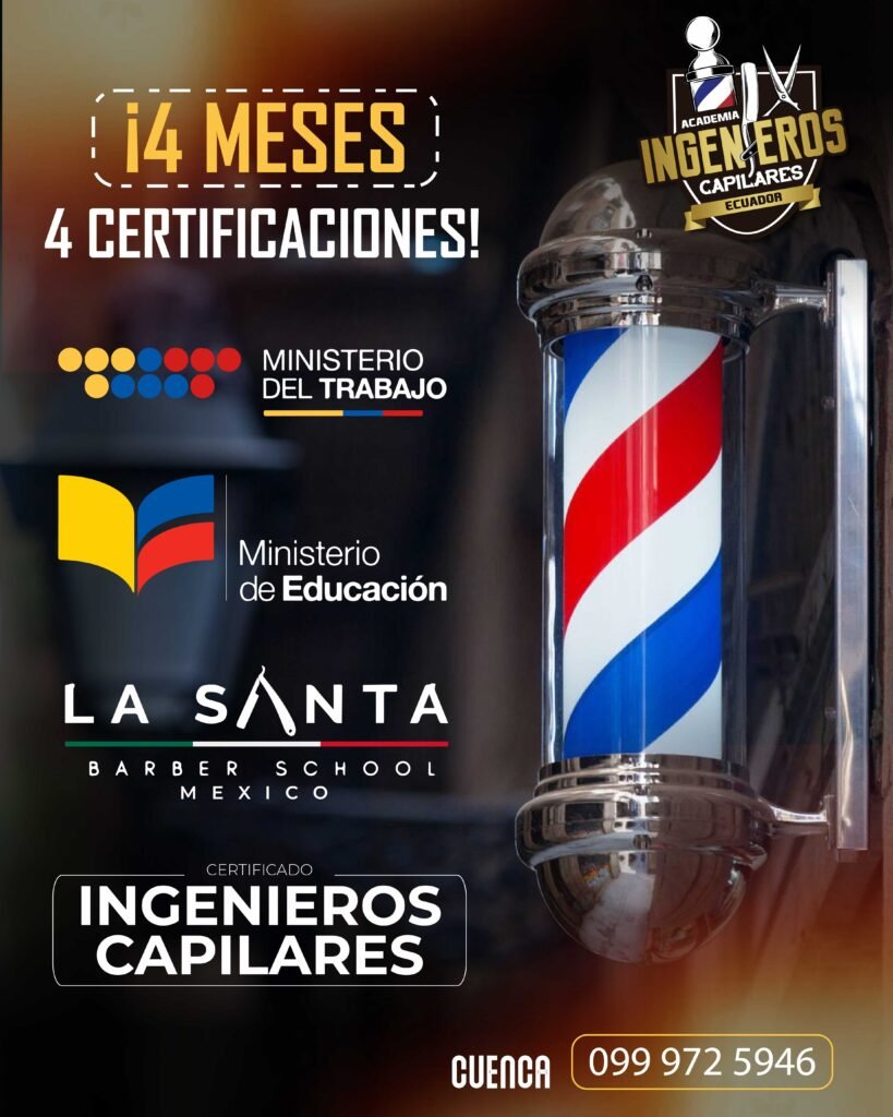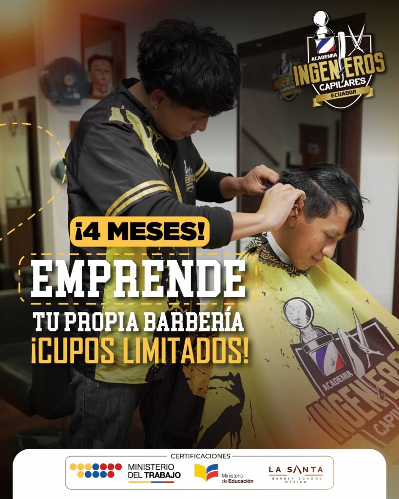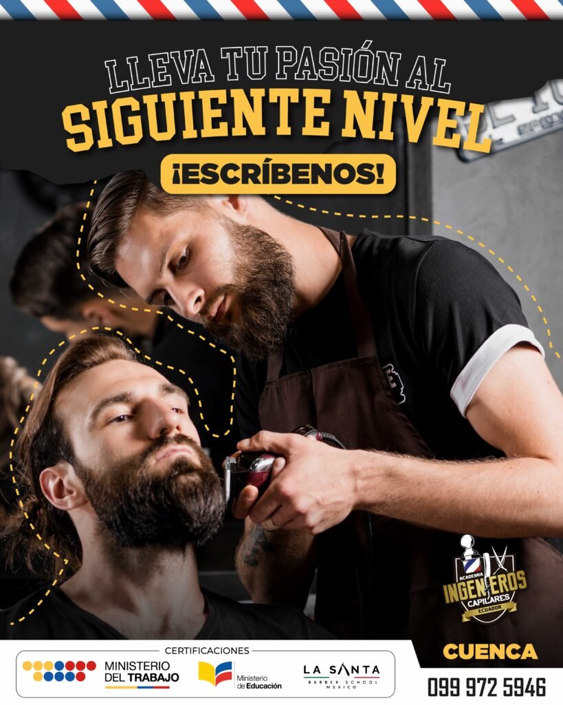 Aquí aprenderás barbería profesional, FADE, técnicas avanzadas de corte, diseño de barba, salud capilar, colorimetría, cómo emprender tu propia barbería con orientación en marketing, permisos legales ¡y mucho más!